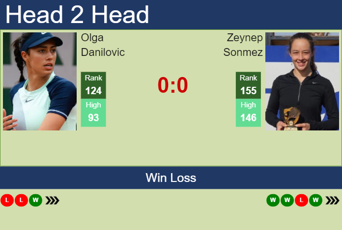 H2H, prediction of Olga Danilovic vs Zeynep Sonmez at the